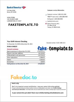 USA First Century bank proof of address statement template in Word and PDF format (.doc and .pdf)