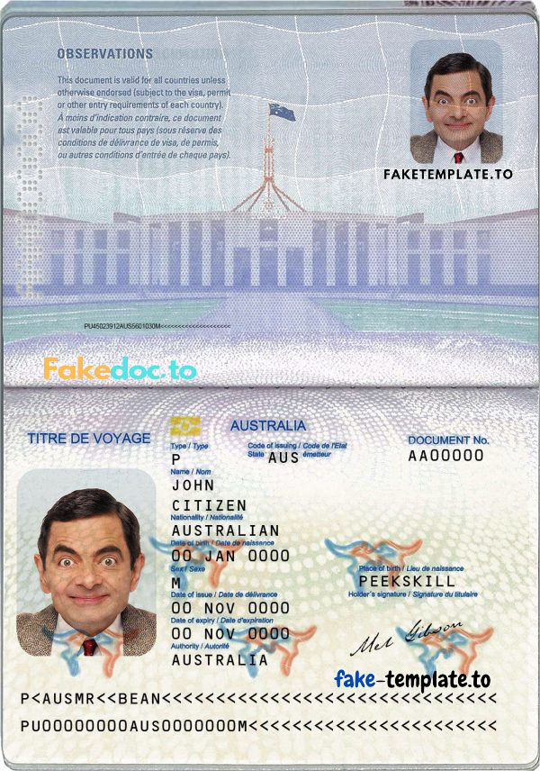 Fake Australian Passport Template (photoshop) is best for verify