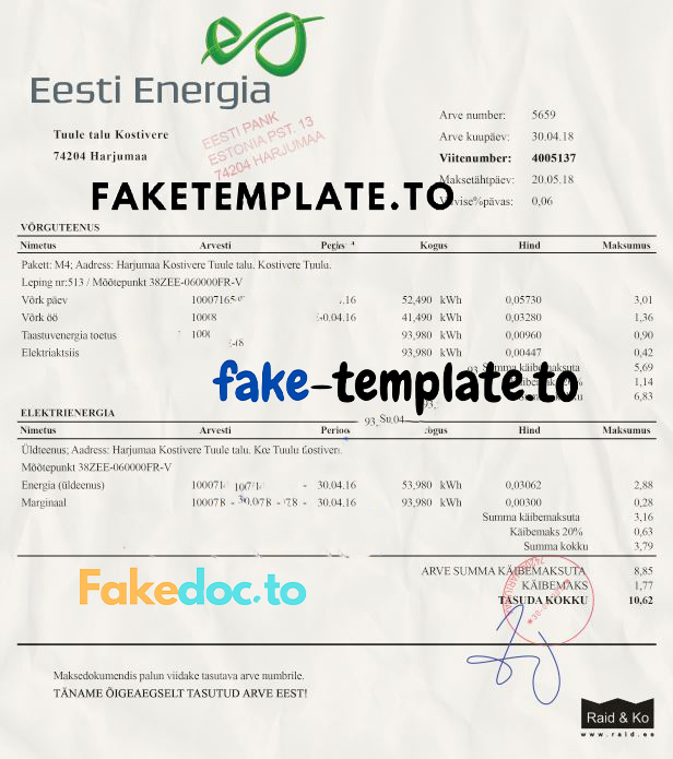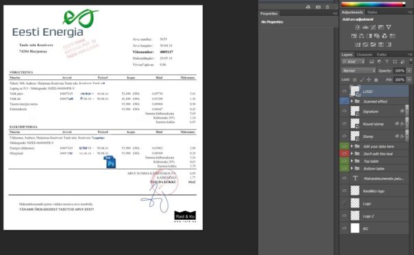 Estonia Utility Bill Template: Estonia Proof of address psd template