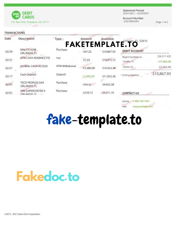 Fake Green Dot Bank Statement (photoshop) is best for verify