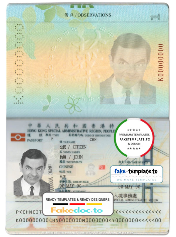 Completely editable Hong Kong passport template in PSD format.