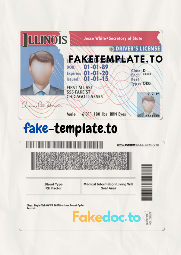 Fake Illinois Drivers License Template (photoshop) is best for verify