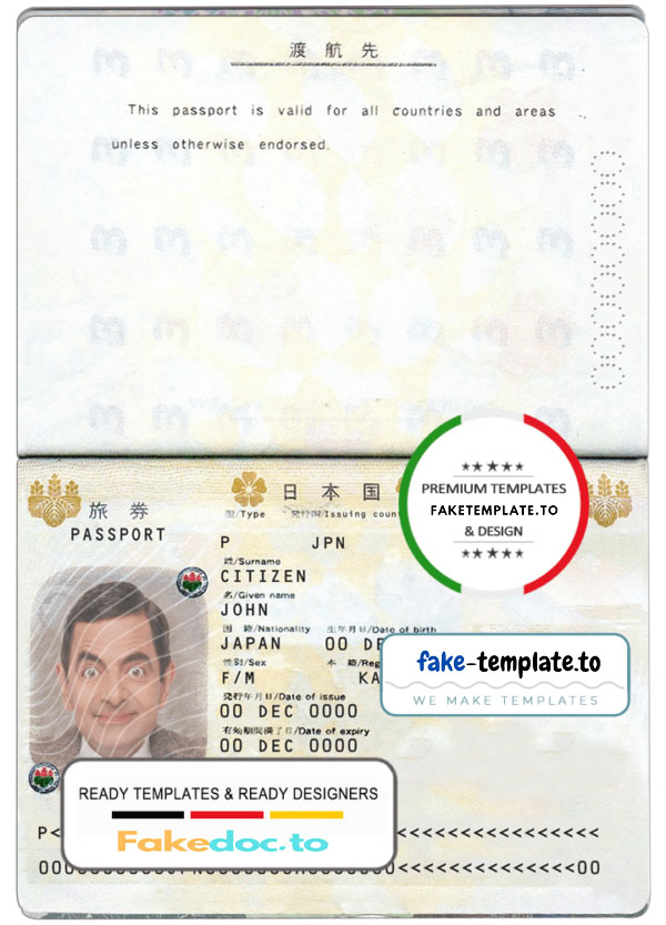 Here you see a high-quality passport of Japan at the best price.You need Photoshop to edit this template.