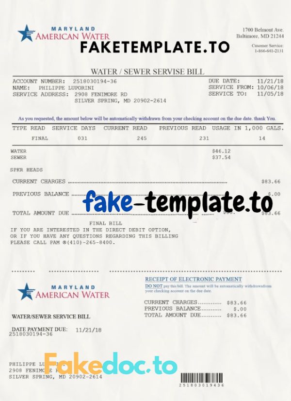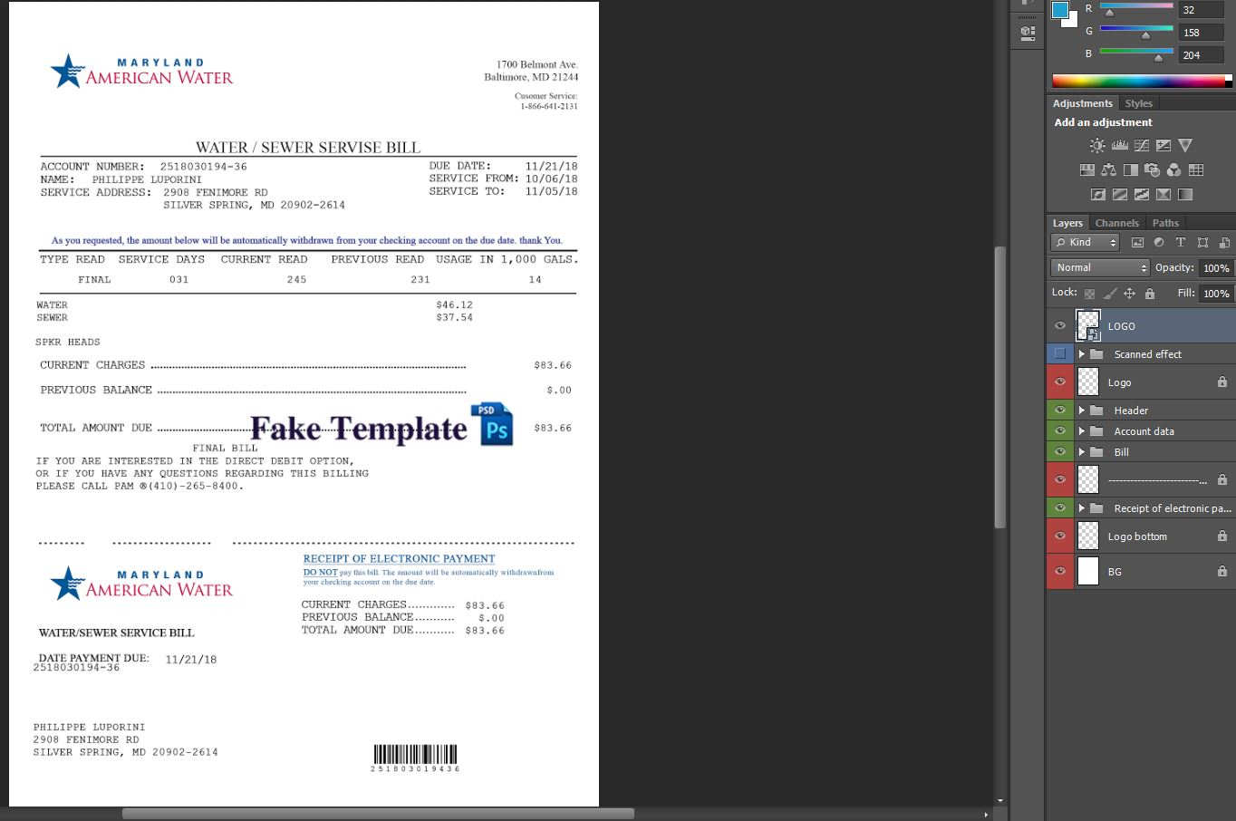 Maryland American Water Bill Psd (photoshop) is best for verify