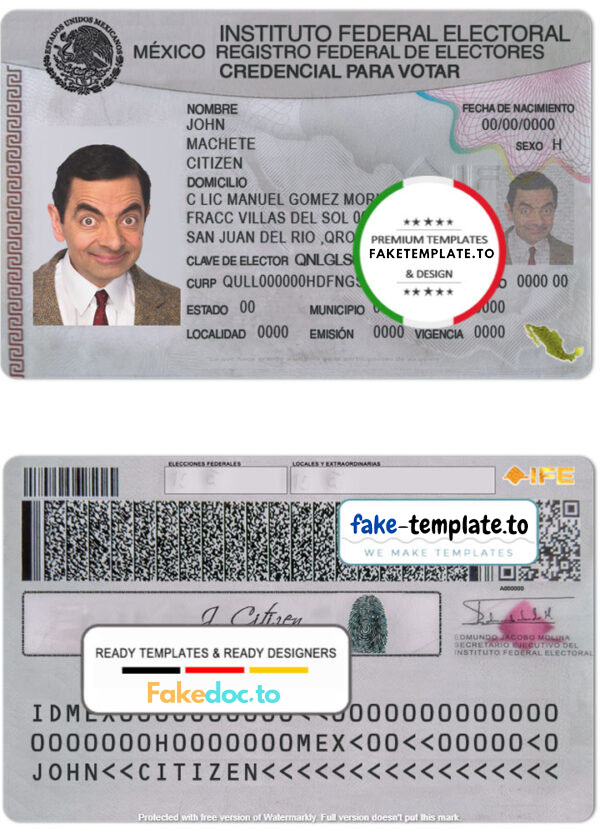 Completely editable Mexican ID template of high quality.
