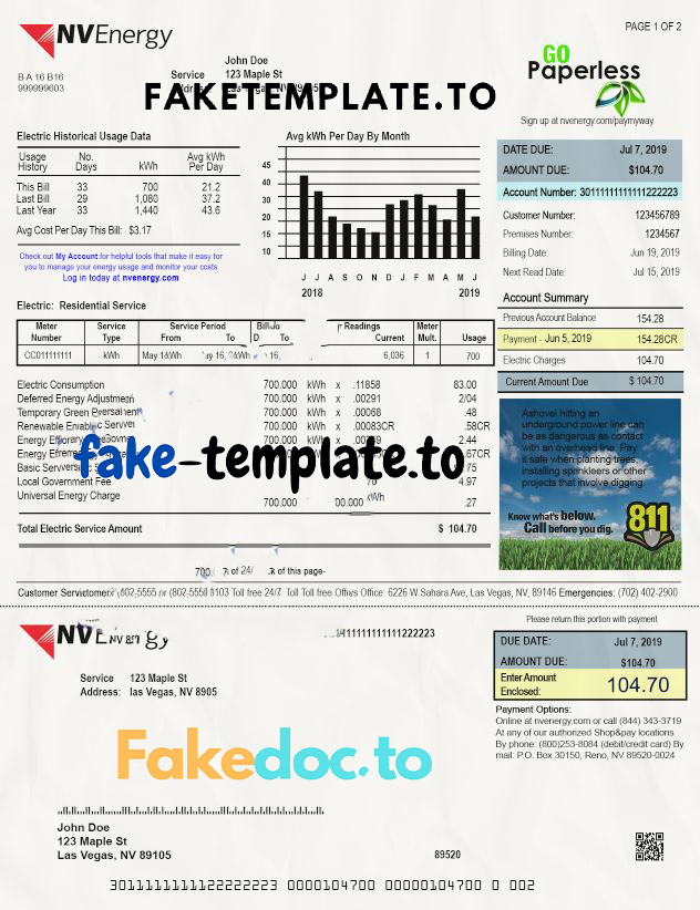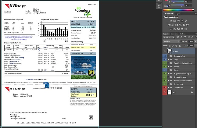 Nevada Utility Bill Template: Nevada Proof of address psd template