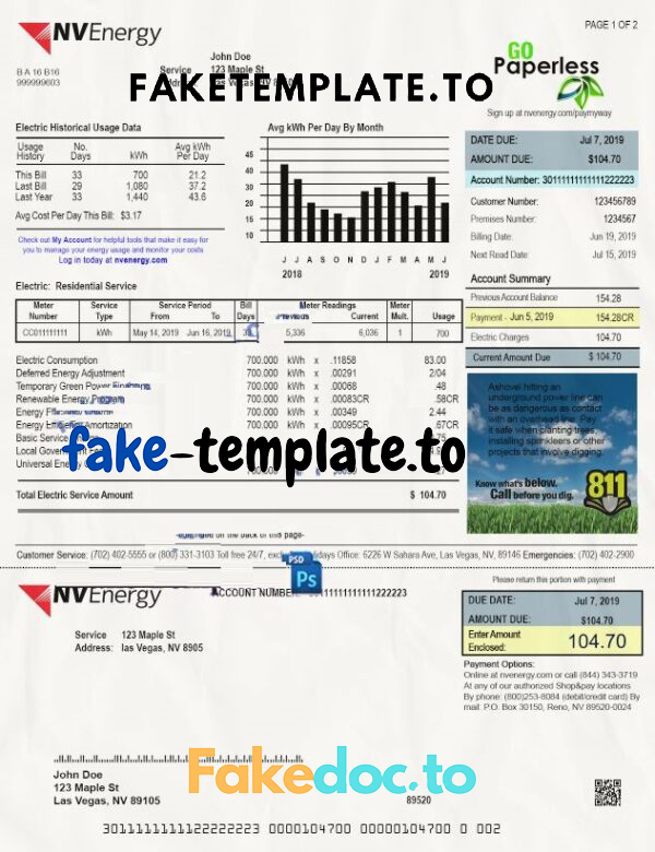 USA Utility Bill Psd Template V5 : USA Proof of address Psd Template