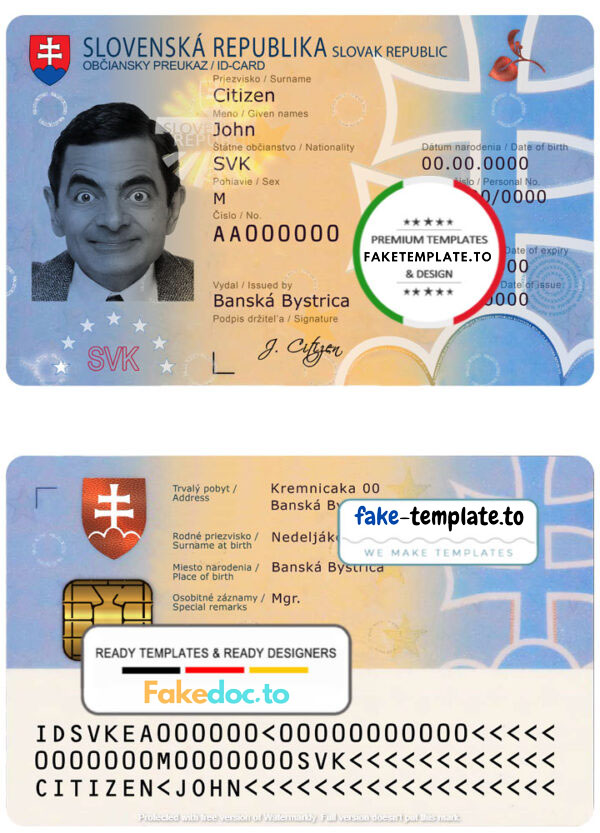 Fully editable template of Slovakia ID. The template is in PSD format, high-quality and easy to fill.