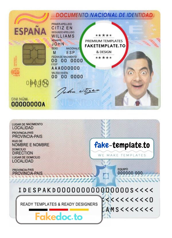 Fully editable template of Spanish ID. The template is in PSD format, high-quality and easy to fill.