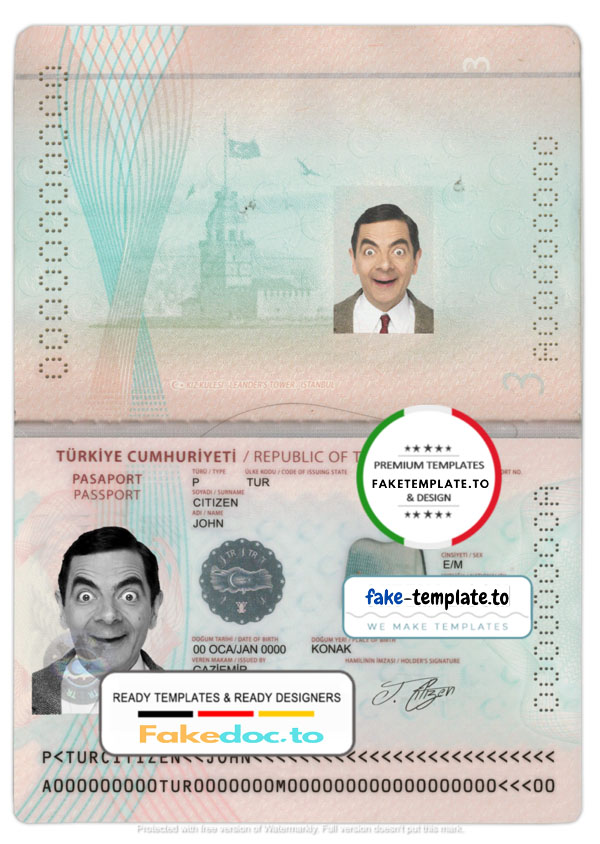 Fully editable template of Turkey passport (New version). The template is in PSD format, high-quality and easy to fill.