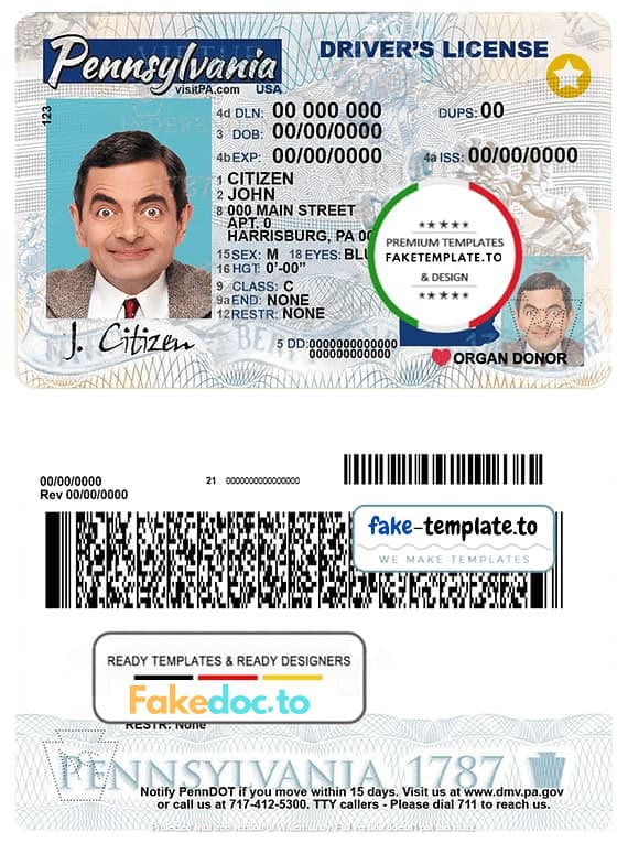 Like all our documents, American Pennsylvania state driving license template is of high quality.