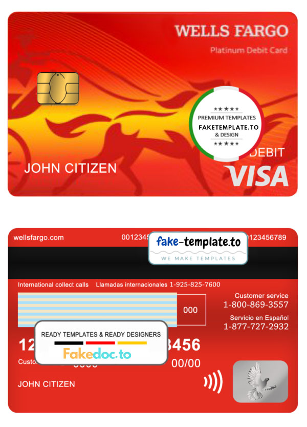 Completely editable USA Wells Fargo bank visa debit card template in PSD format.